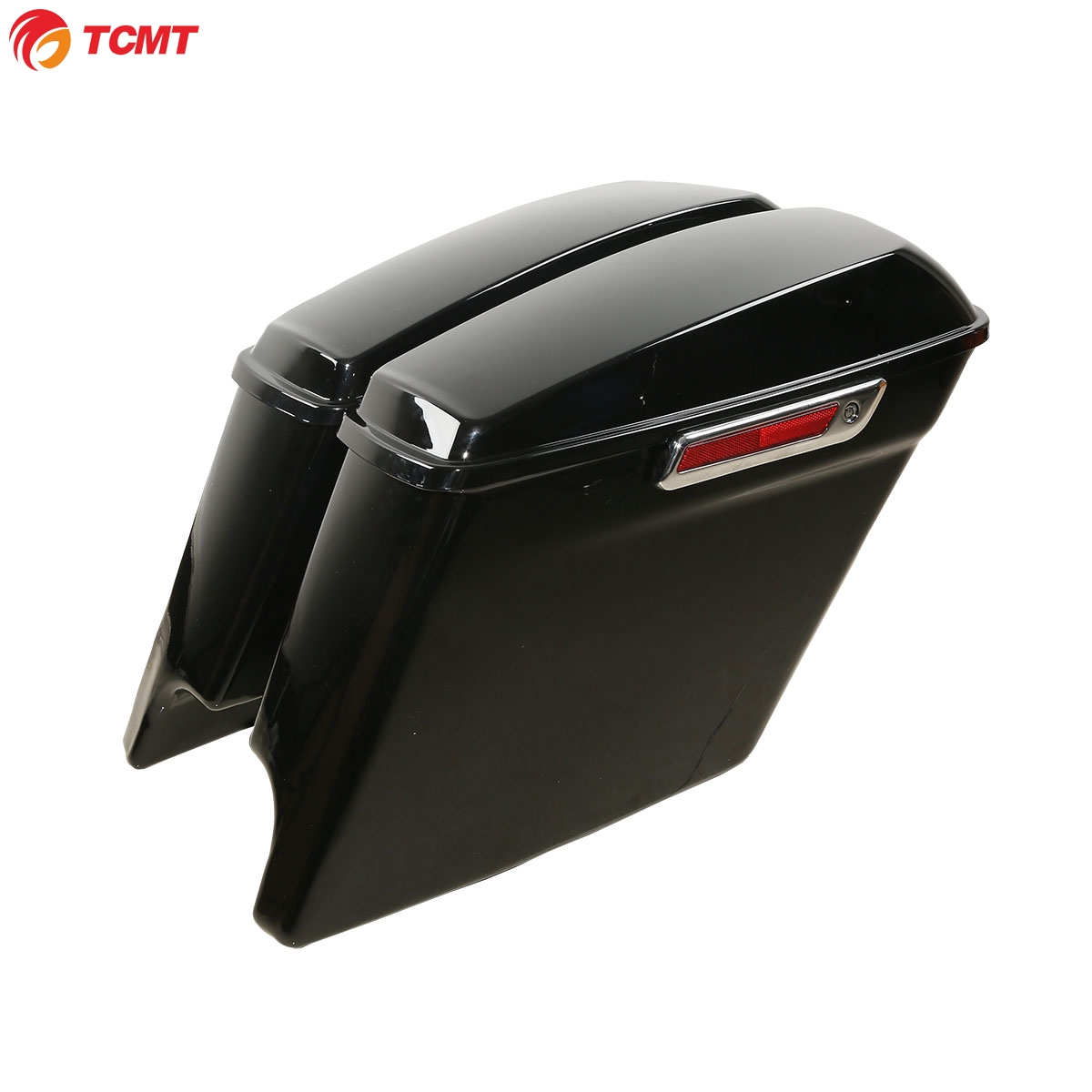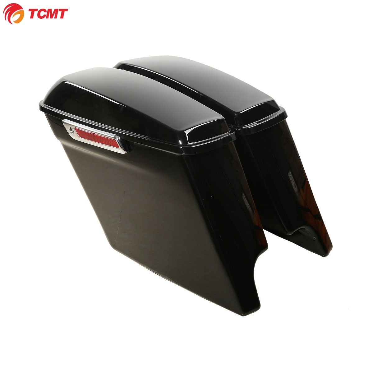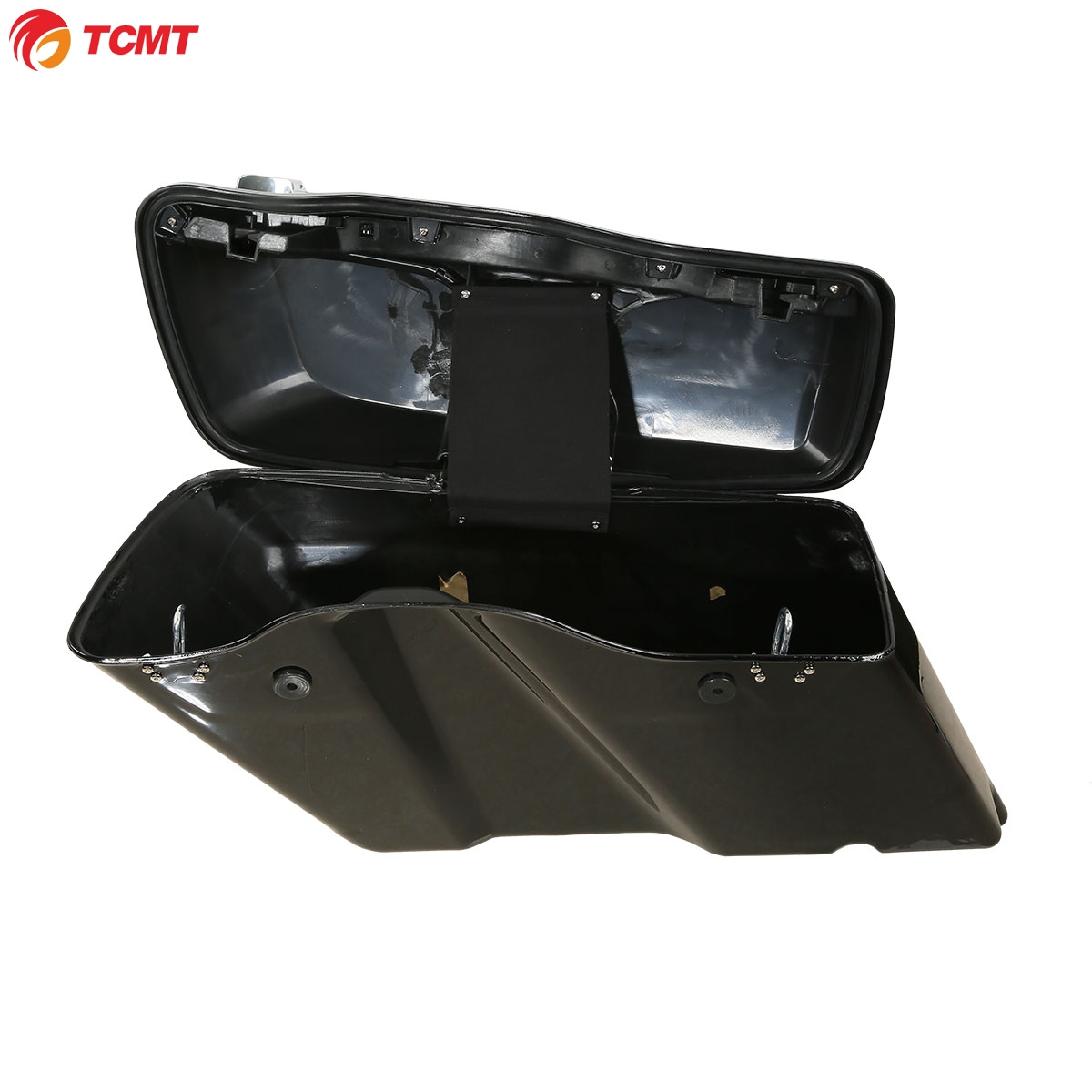 Saddlebags are stretched 5" longer than stock to cover the muffler front to back and give that stretched look
