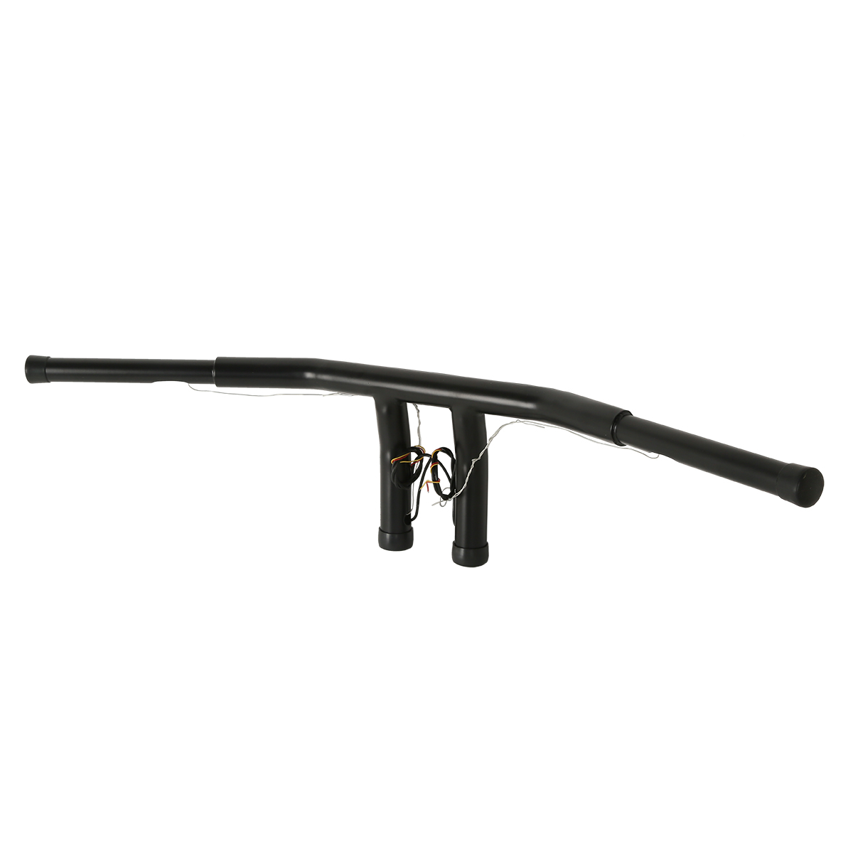6/9.5/12" rise. 6" backward sweep. 1 1/4"-diameter center section tapers to 1" so that standard handlebar controls fit.