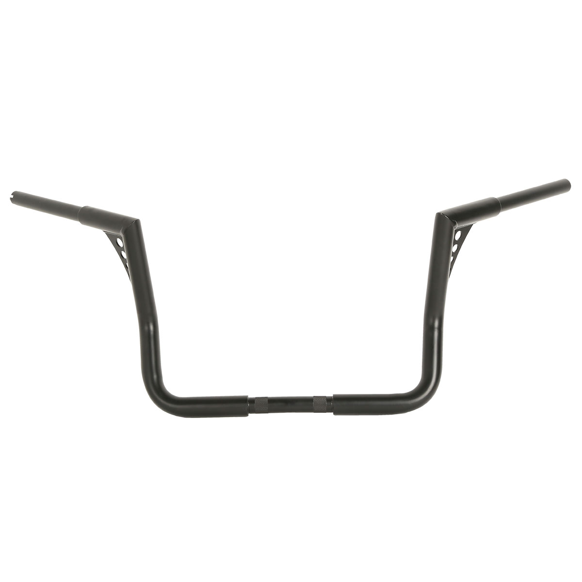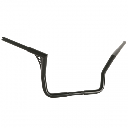 12"/14''/18'' rise. 11" backward sweep. 1 1/4"-diameter. Center section tapers to 1" so that standard handlebar controls fit.