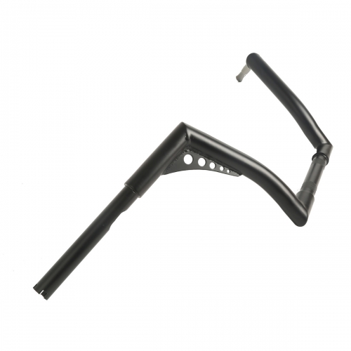 10" rise. 1''diameter center section tapers to 1" so that standard handlebar controls fit