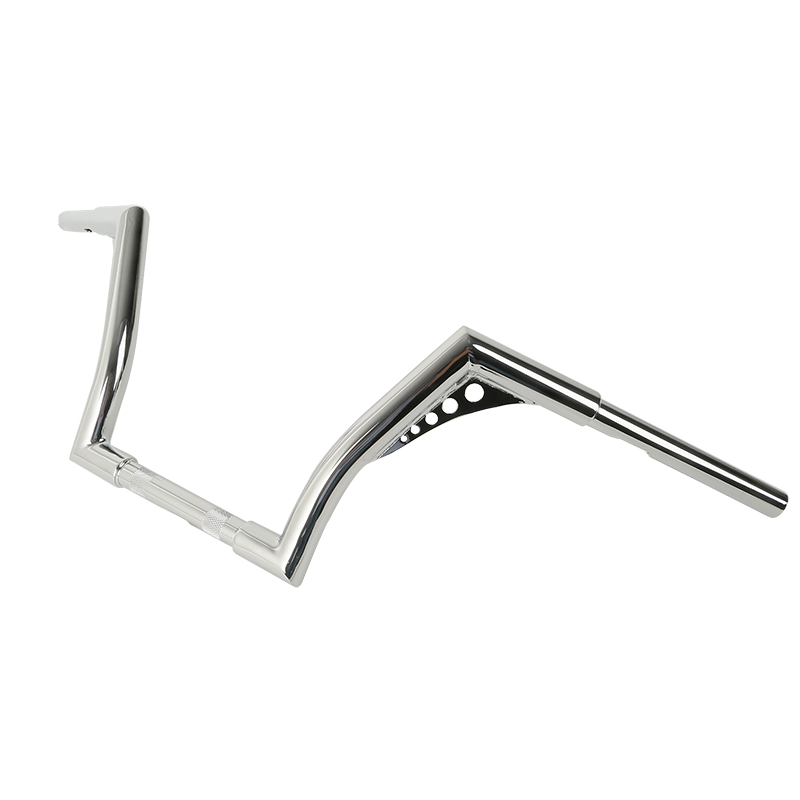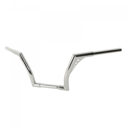 10" rise. 1''diameter center section tapers to 1" so that standard handlebar controls fit