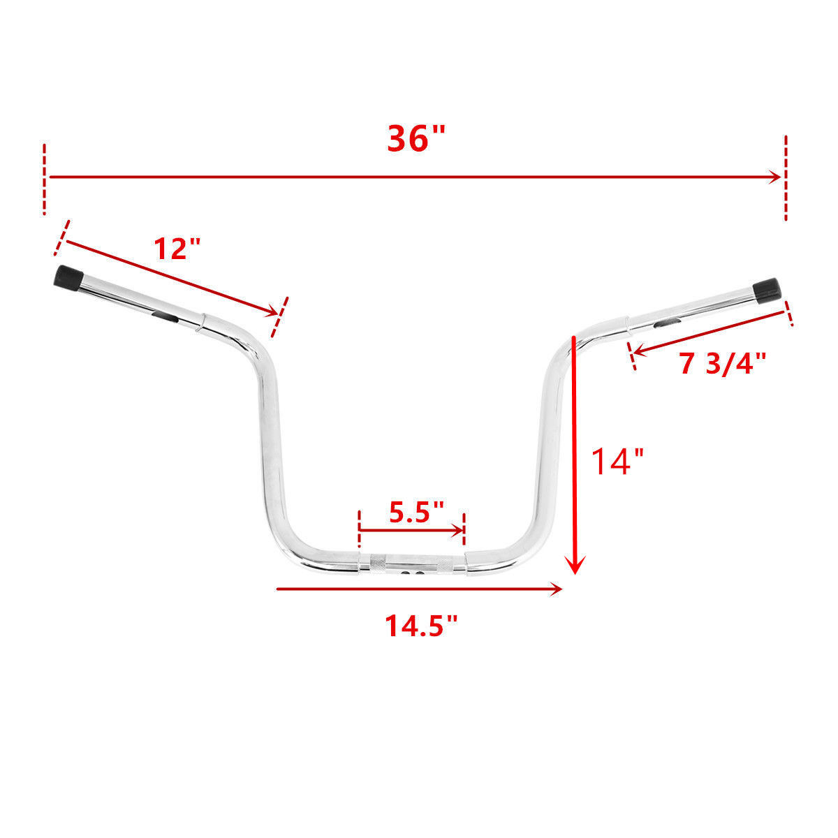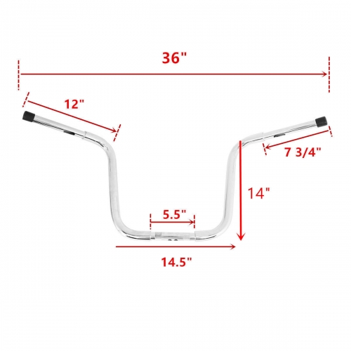 14" rise. 1 1/4"-diameter center section tapers to 1" so that standard handlebar controls fit.