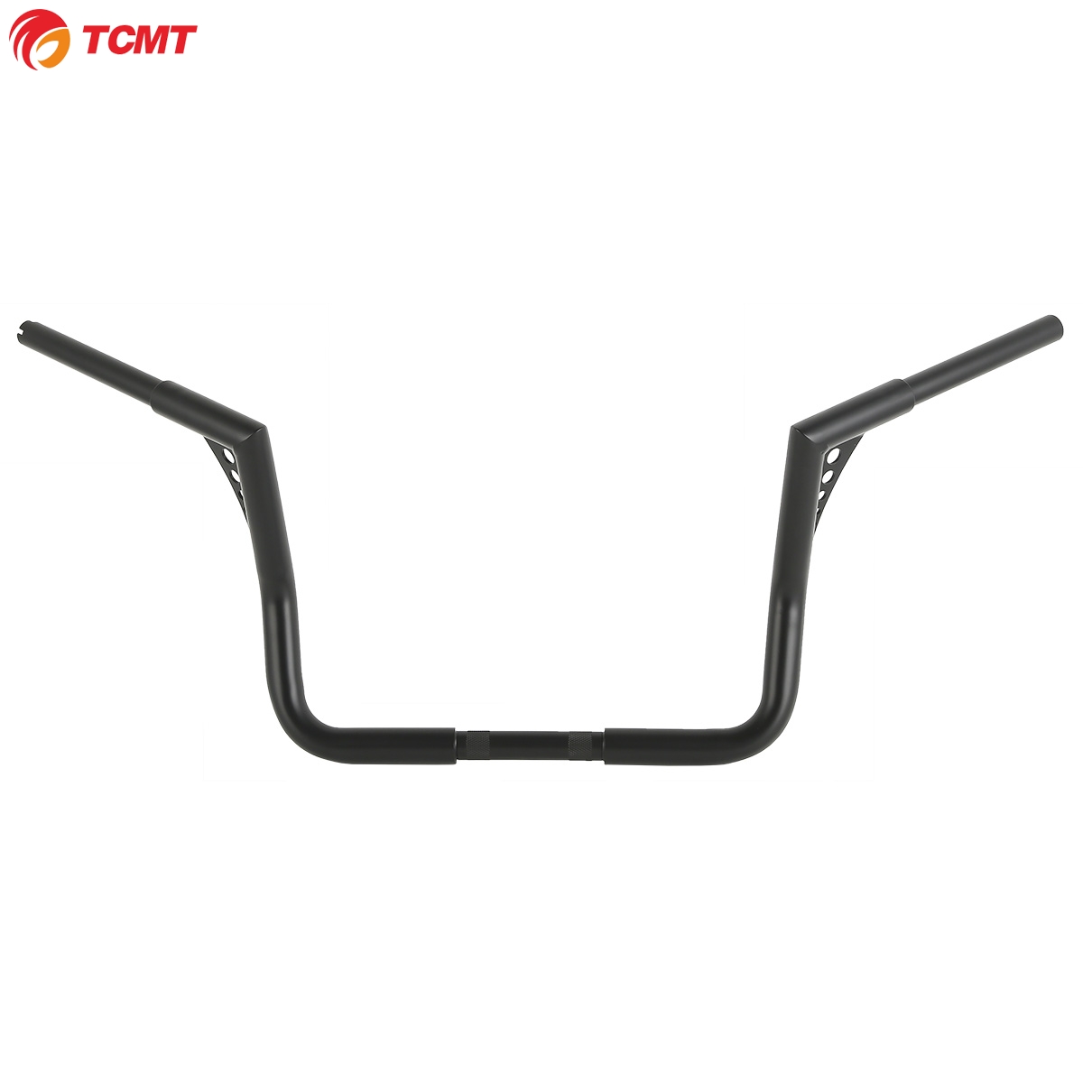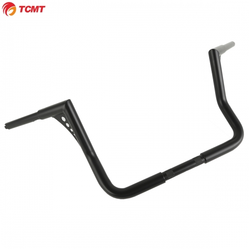12" rise. 11" backward sweep. 1 1/4"-diameter. Center section tapers to 1" so that standard handlebar controls fit.