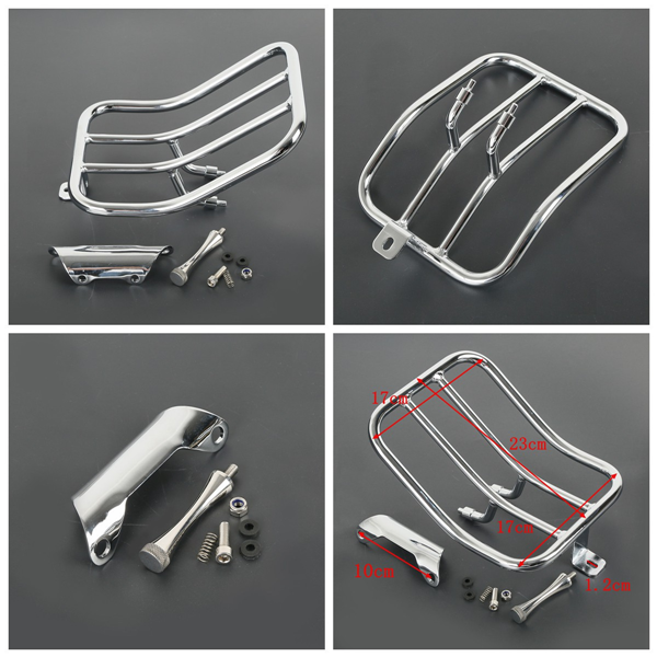 Tour Pack Rack Material:Iron and Aluminum,Process:welding and CNC,surface:8 grade electroplating or baking varnish.Fit for Harley Road king,FLHR Sissy Bar  Material:Iron, Aluminum and leather pad,Process:welding and CNC,surface:baking varnish.Fit for Harley Touring